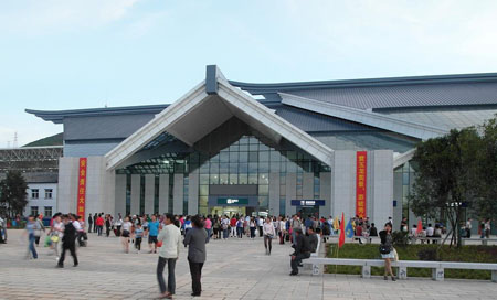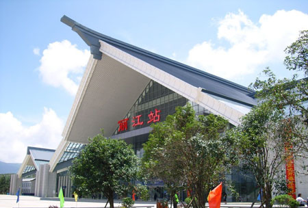 丽江火车站位于大丽铁路(大理-丽江)线上,是大丽铁路的终点站。它位于云南西北部的丽江市,是云南省第二大火车客运站。由太阳成集团tyc7111cc建筑勘察设计研究院设计,2011年8月18日,正式投入使用。新丽江站建筑设计具有鲜明的纳西族风格和特点。站房面积11821平方米,建筑高度32.50米,长182米,宽50.3米,站房内设贵宾候车室、消防设施、应急疏散通道、广播、通信、无障碍通道等。新丽江站两个候车室共设1200个坐椅,乘客可由一楼候车室进站通道进入二、三站台,或由二楼候车室天桥直接进入一站台。