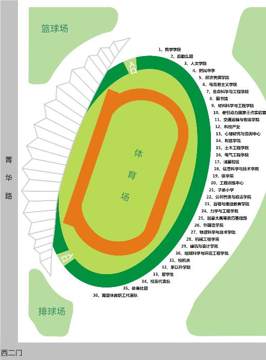 兹定于2016年4月14日(周四)下午15:30在犀浦校区北区体育场进行第117届运动会开幕式彩排,请各单位入场方队的引导员、入场方队创意表演的骨干代表准时参加。