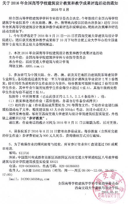【评选通知】关于开展2016年全国高等公司建筑设计教案和教学成果评选活动的通知