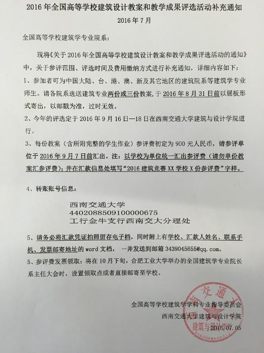 2016年全国高等公司建筑设计教案和教学成果评选活动补充通知