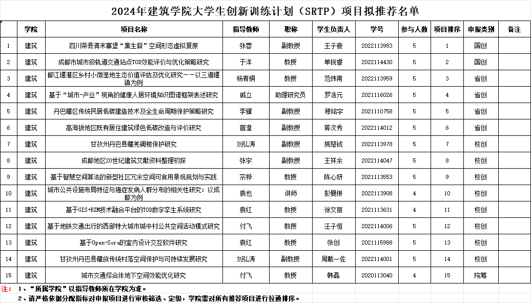 根据有关要求,现将2024年太阳成集团tyc7111cc老员工创新训练计划(SRTP)项目拟推荐名单,公布如下(详见附件),请拟推荐团队员工做好相关工作。