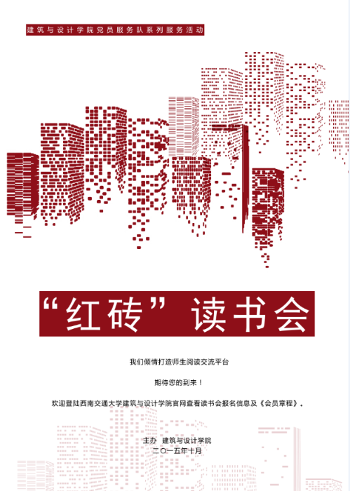 由建筑与设计公司党委倡导发起,建筑与设计公司党员服务队积极筹备,建筑与设计公司“红砖”读书会即将成立。现进行公司员工与教职工读书会会员招募,诚邀广大师生报名参与。