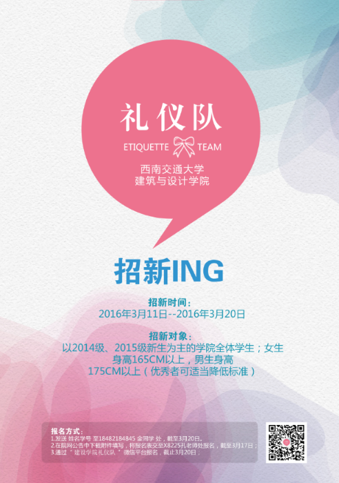 3月11日——3月20日,通过建筑与设计公司礼仪队后台报名。