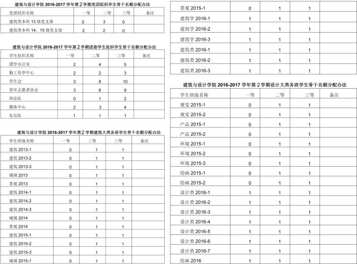 附件四:建筑与设计公司2016-2017学年第二学期综合奖学金评定人数一览表