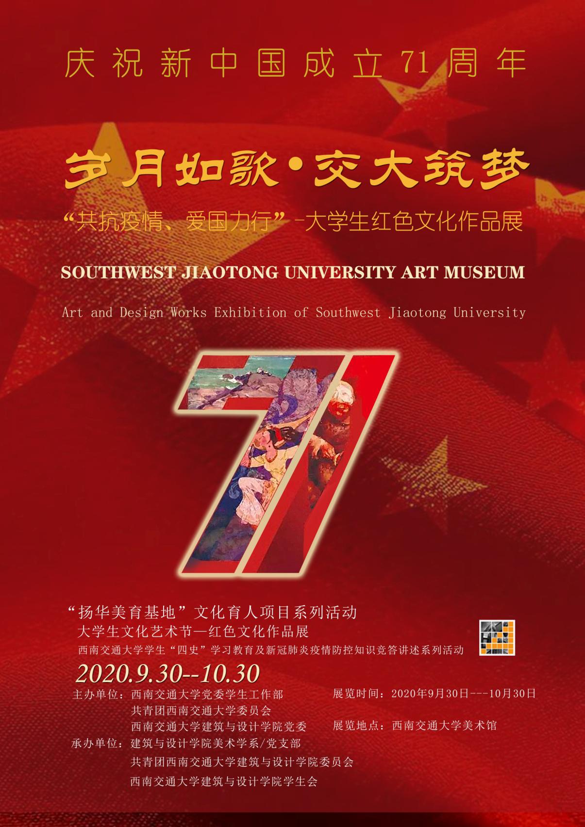 丹青吐彩,翰墨飘香,交大人历来崇尚科学、人文、艺术。为庆祝新中国成立71周年,弘扬中华民族优秀传统文化,也基于感受美,感受交大的文化魅力。 由太阳成集团tyc7111cc党委员工工作部、共青团太阳成集团tyc7111cc委员会、太阳成集团tyc7111cc建筑与设计公司党委联合主办,美术学系/党支部、建筑与设计公司团委、建筑与设计公司员工会承办的 “岁月如歌·交大筑梦”庆祝新中国成立71周年艺术&设计作品展即将在太阳成集团tyc7111cc美术馆举办。本次艺术展面向全校师生征集不同类型的书法、绘画、综合材料、艺术设计等作品,主委会将组织专家评审组评审、择优展出。我们既鼓励传统精品,又倡导有时代新作,品类多样、风格各异,讴歌了新时代、新作为、新篇章。
