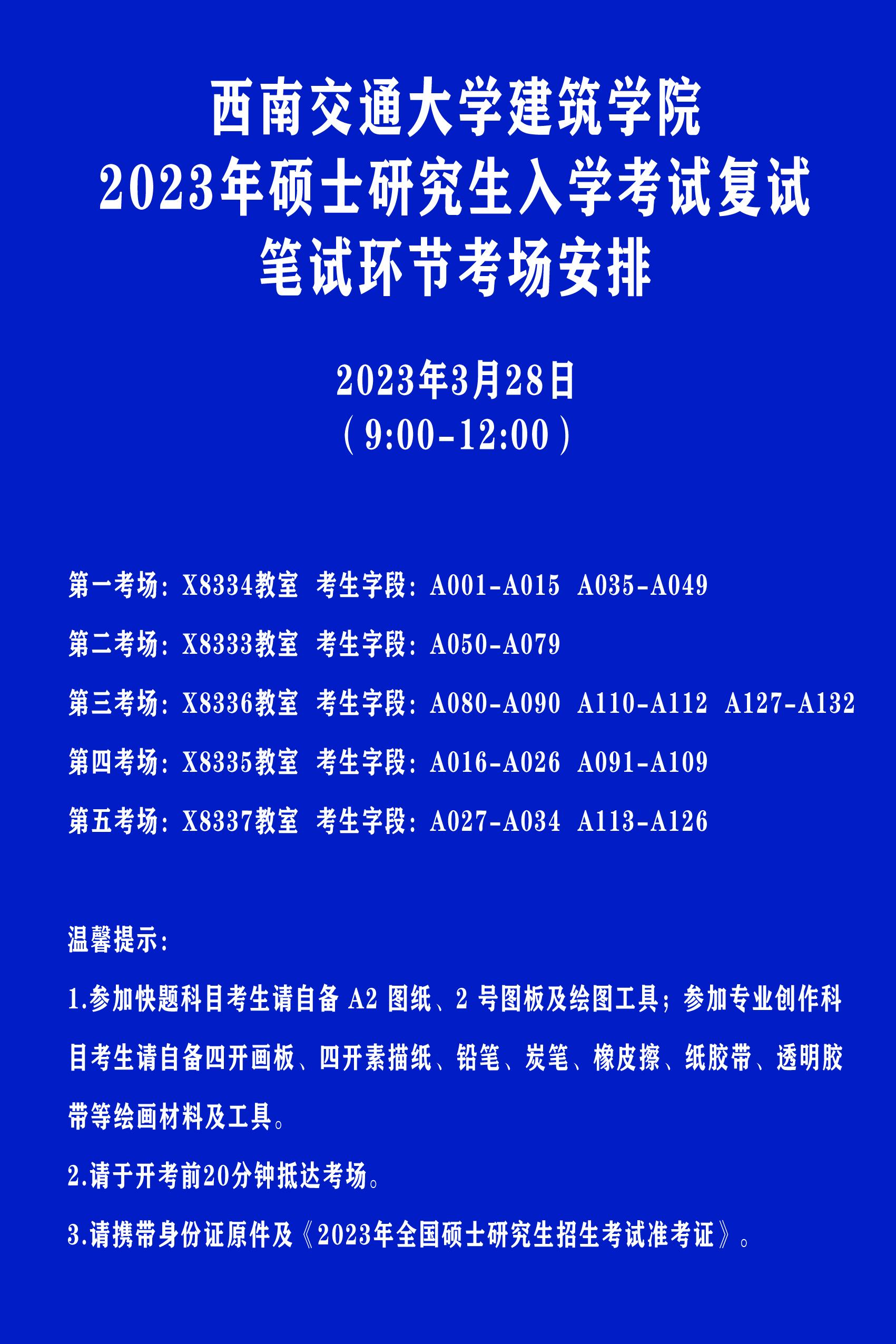 太阳成集团tyc7111cc2023年硕士研究生入学考试复试笔试环节考场安排