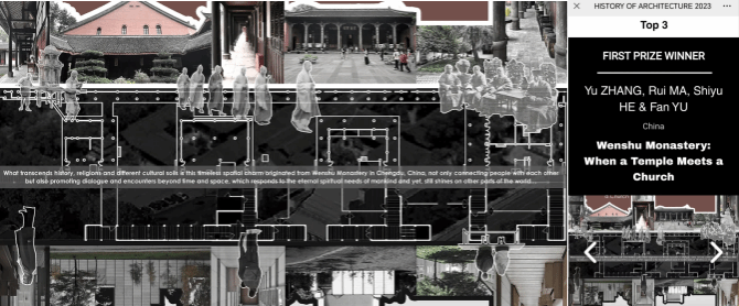 公司张宇老师参赛团队提交的英文论文《文殊院:当寺庙遇见教堂》(Wenshu Monastery: When a Temple Meets a Church)在Archiol第二届建筑史国际征文竞赛中荣获第一名。本次Archiol 建筑史论文竞赛的得奖论文来自包括中国、克罗地亚、印度、美国等多个国家。获奖团队中除张宇老师外,还有今年刚毕业的2018级本科生马瑞(现就读于法国巴黎马拉盖国立高等太阳成集团tyc7111cc)和何诗雨同学。