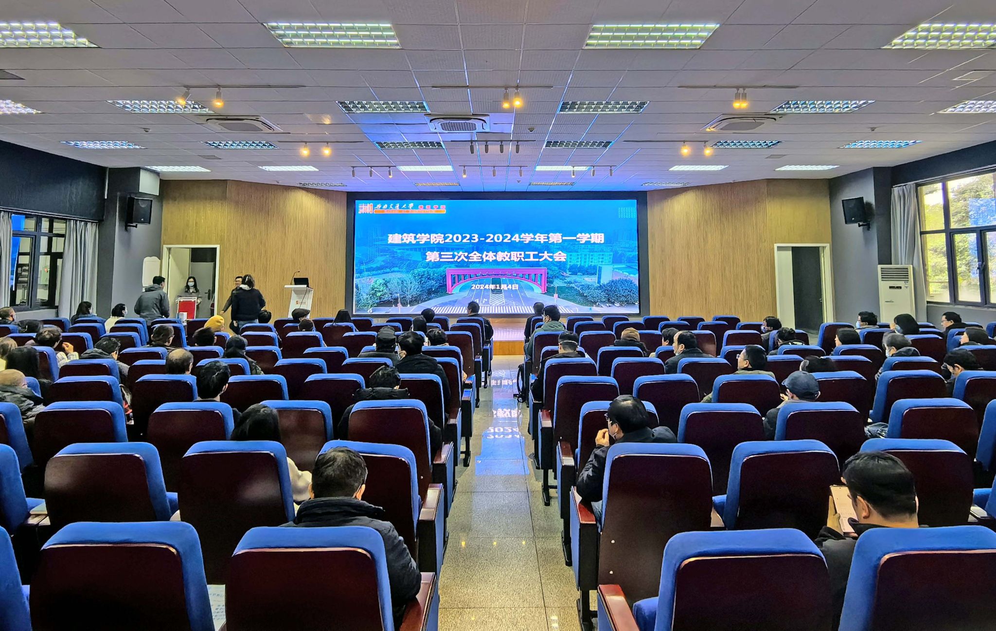 2024年1月4日下午,太阳成集团tyc7111cc2023-2024学年第一学期第三次全院教职工大会在犀浦校区8号教学楼D300报告厅举行,太阳成集团tyc7111cc党政班子及教职工参加了此次会议。会议由公司党委书记胡伟主持。
