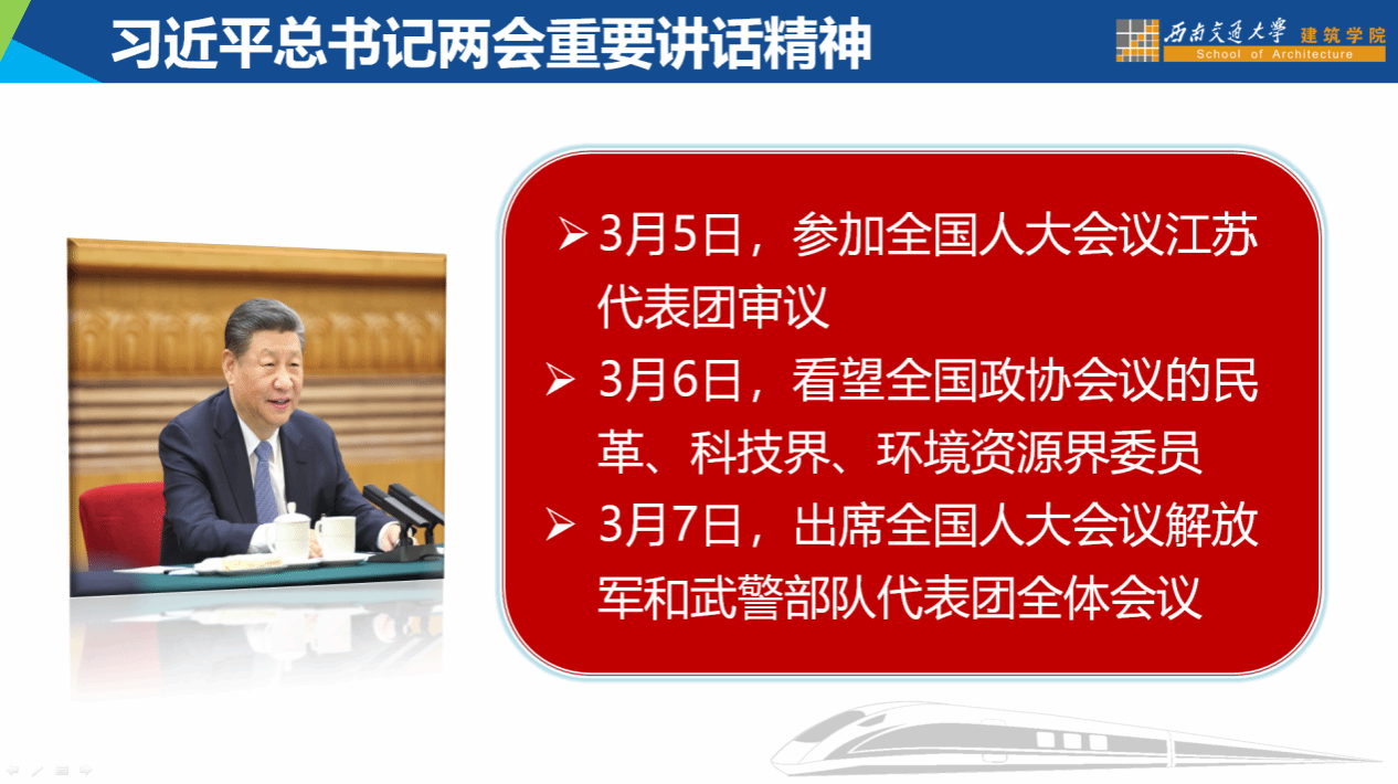 党委副书记刘一杰带领与会教师共同学习了习近平总书记在全国两会期间参加全国人大会议江苏代表团审议,看望全国政协会议的民革、科技界、环境资源界委员,以及出席全国人大会议解放军和武警部队代表团全体会议时发表的重要讲话精神。会议强调,学习贯彻全国两会精神是当前一项重大政治任务。全院师生要坚持以习近平新时代中国特色社会主义思想为指导,把学习贯彻两会精神与学习贯彻习近平总书记关于教育的重要论述和党的二十大精神结合起来,深刻领悟“两个确立”的决定性意义,增强“四个意识”、坚定“四个自信”、做到“两个维护”,牢牢把握“人才培养”中心工作,担当起科技创新的重任,以发展新质生产力引领公司转型高质量发展。