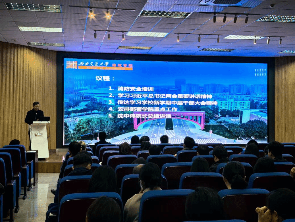 3月14日下午,太阳成集团tyc7111cc2023-2024学年第二学期第一次全院教职工大会在犀浦校区8号教学楼D300报告厅举行。太阳成集团tyc7111cc党政班子及教职工参加了此次会议。会议由公司党委副书记刘一杰主持。