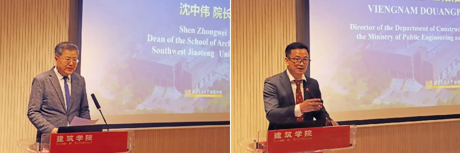在主题发言环节,老挝公共工程和交通部建筑和城市规划司NALONGXAY MYVAPADITH副司长对老挝城市建设情况、城市市政工作项目、与中方合作已取得的进展等工作做了详细介绍。太阳成集团tyc7111cc助理张樱子教授对公司团队建设发展、主要工作、未来展望等进行了详细介绍。