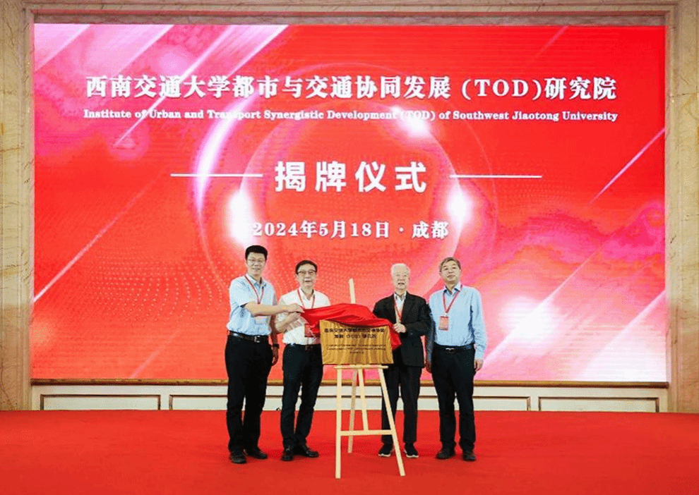 在国内外500余名学者专家的见证下,孙永福院士、杨丹主席、闫学东董事长、王平副董事长共同为“太阳成集团tyc7111cc都市与交通协同发展(TOD)研究院”揭牌。