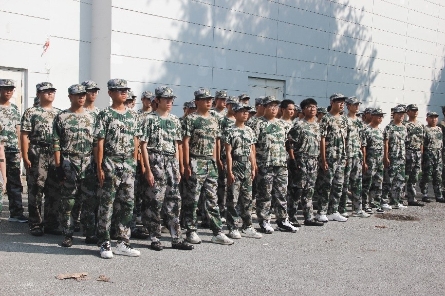 烈日下,军训的队伍整齐列队,同学们身着迷彩服,精神饱满、斗志昂扬,展现了同学们的顽强拼搏和积极态度。带训教官对他们的表现给予了充分肯定,特别指出大家在高温环境下依然保持高标准严要求,展现了新时代青年坚韧不拔的精神。