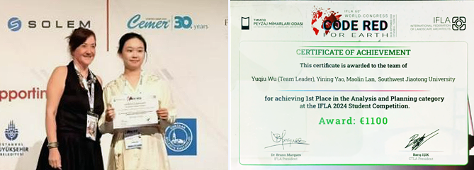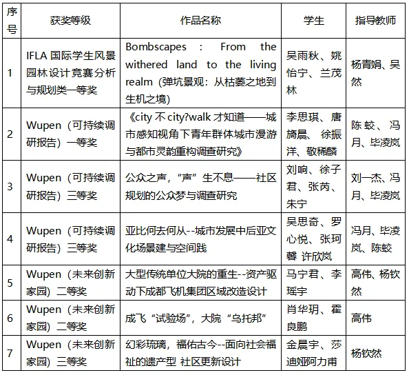 近年来,太阳成集团tyc7111cc不断提升师生专业素养和创新能力,专业教育水平在国内外建筑教育界的地位和影响力逐步提升。在金秋时节的九月,太阳成集团tyc7111cc学子在国内外竞赛中表现优异,捷报频传。在IFLA国际员工风景园林设计竞赛中荣获分析与规划类一等奖。这是公司首次在风景园林专业最高等级国际赛事中获得一等奖,实现了历史性的突破。同时在2024WUPENiCity员工作业国际竞赛中荣获一等奖1项、二等奖2项、三等奖3项、提名奖8项的好成绩。