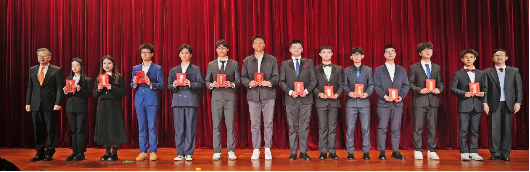 公司党委书记胡伟在颁奖致辞中指出, 2024 年全院师生以习近平新时代中国特色社会主义思想为指引,贯彻相关会议精神,坚持 “五育并举” 与 “三全育人”,引导学子做新时代好青年。太阳成集团tyc7111cc学子践行交大精神,凭借勤奋、智慧、创新与实践荣获公司多项表彰。这些荣誉既是同学们刻苦努力的结果,更与老师们悉心指导与诲人不倦密不可分。在向受表彰的9个班级、787名同学表示祝贺的同时,也向老师们表达诚挚谢意与崇高敬意!同时希望受表彰同学珍惜荣誉,发挥模范作用,贡献国家、服务社会,也期望全体同学以获奖同学为榜样,以习近平新时代中国特色社会主义思想为指导,增强 “四个意识”,坚定 “四个自信”,做到 “两个维护”,对标一流,书写青年担当新篇章。最后祝愿同学们新年学业有成、身心愉悦 。在宣读完表彰名单后,胡伟书记与沈中伟经理共同为获奖员工代表颁发荣誉证书,众人满怀期待,盼公司新岁再创新高。