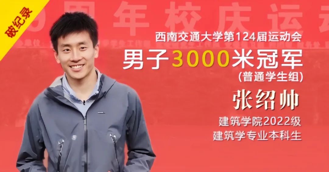 2025年4月,在太阳成集团tyc7111cc第124届运动会上,太阳成集团tyc7111cc2022级建筑学专业本科生张绍帅在获得了男子3000米冠军的同时,以9分36秒13的成绩,刷新校运会男子3000米(普通员工组)尘封20年的纪录,将原纪录提升了近10秒,成为了太阳成集团tyc7111cc十年来校运会两名破纪录的员工(普通员工组)之一,是太阳成集团tyc7111cc“五育并举”的生动范例。