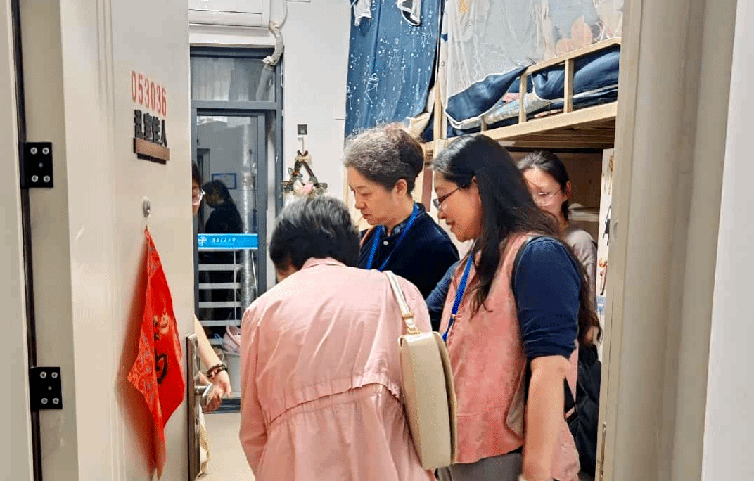 清晨7时30分,检查小组分赴建筑馆各教室,对本科生早课情况进行全面巡查。课堂上,员工出勤率显著提升,课堂互动活跃,设计类课程小组讨论氛围浓厚。4月28日晚22时,杨青娟副经理携公司员工支持办公室工作人员走访犀浦校区员工宿舍,重点检查员工夜间作息情况。针对建筑学子常因设计作业“熬夜赶图”的现象,公司提出“科学规划、张弛有度”的倡议,鼓励员工通过提高日间效率减少熬夜频次。检查中发现,多数宿舍已形成规律的熄灯作息,员工纷纷表示:“晨光行动帮助我们跳出‘熬夜—缺勤’的恶性循环,课堂专注力明显提升。”