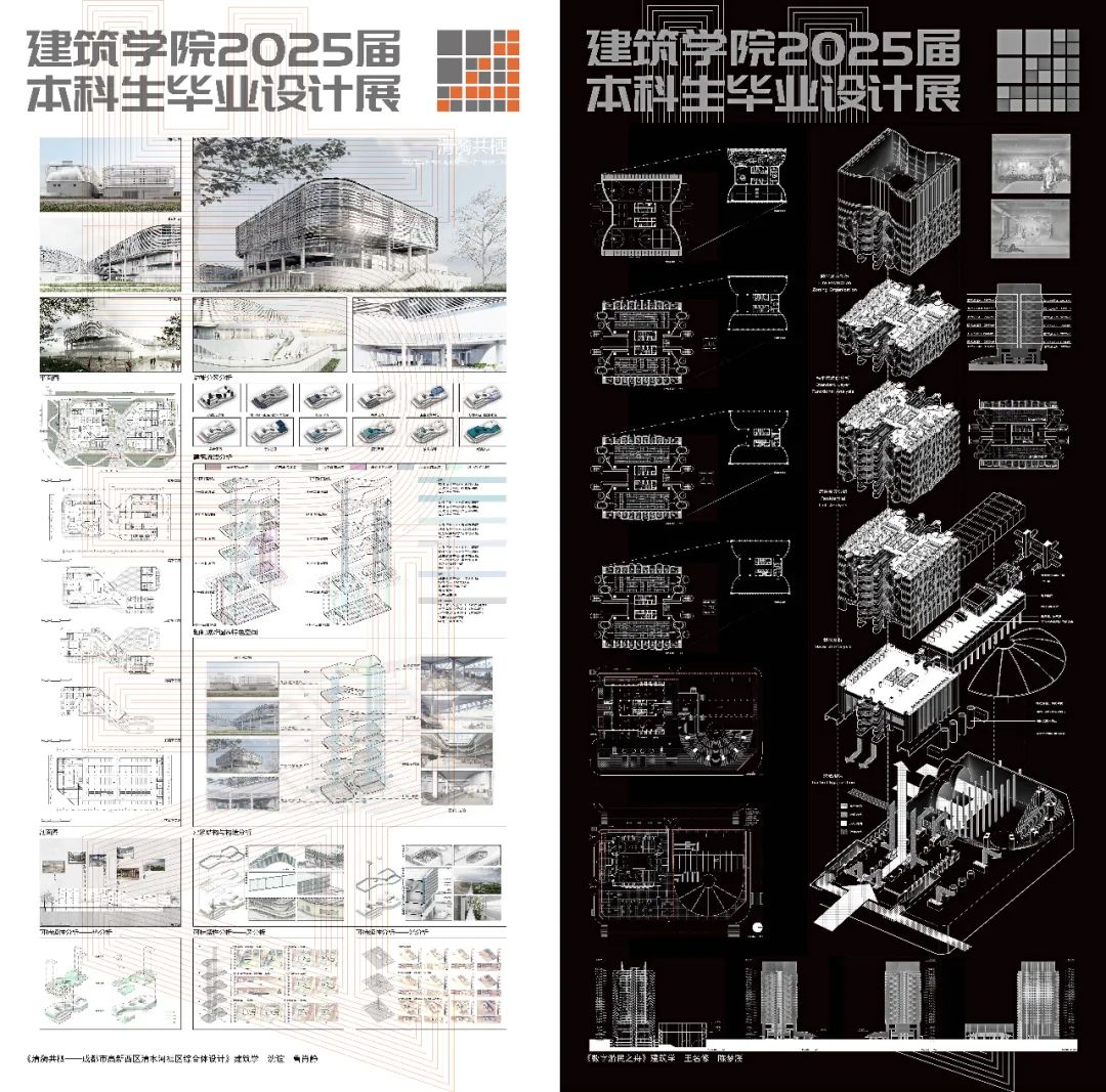 同学们通过模型、图纸与数字化成果,多维度展现设计思考:在适老化社区与历史街区活化领域,既有模块化建筑与共享理念结合的创新思路,也有以西南地域文化为脉络、探索传统营建智慧现代转译的在地性实践;区域协调发展主题下,成渝双城经济圈功能联动策略研究、川西传统村落保护与发展实证分析等作品,彰显建筑类专业服务国家战略的独特价值;生态建设方向呈现兼顾生态修复与场所精神营造的设计实践,如城市棕地再生的景观叙事重构、天府绿道网络的功能优化等创新方案,更有团队运用参数化技术平衡自然形态与人工环境,或基于"海绵城市"理念构建气候适应性景观系统,展现应对环境挑战的前瞻视野。