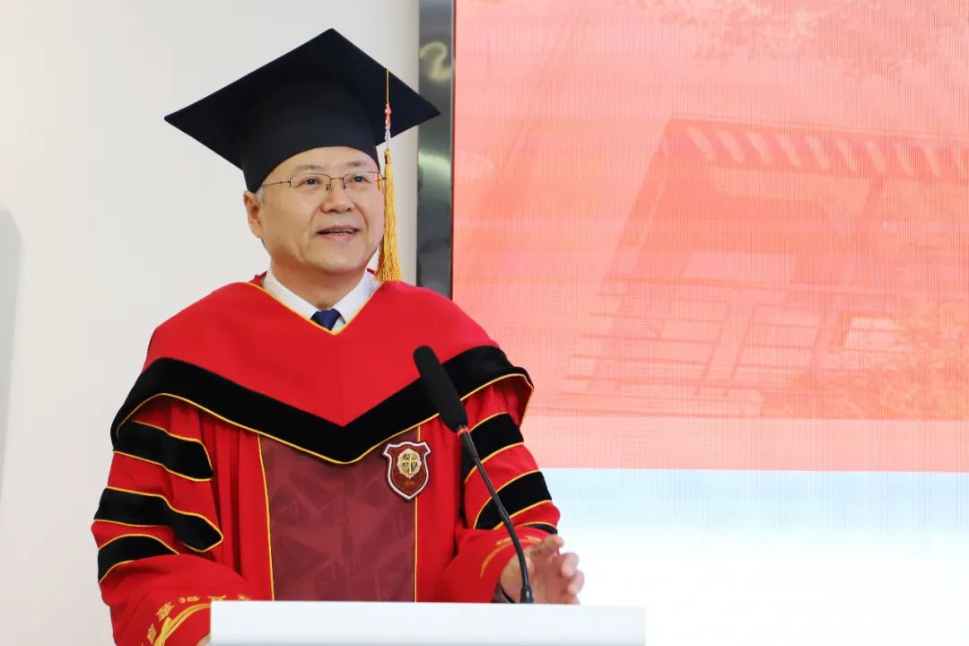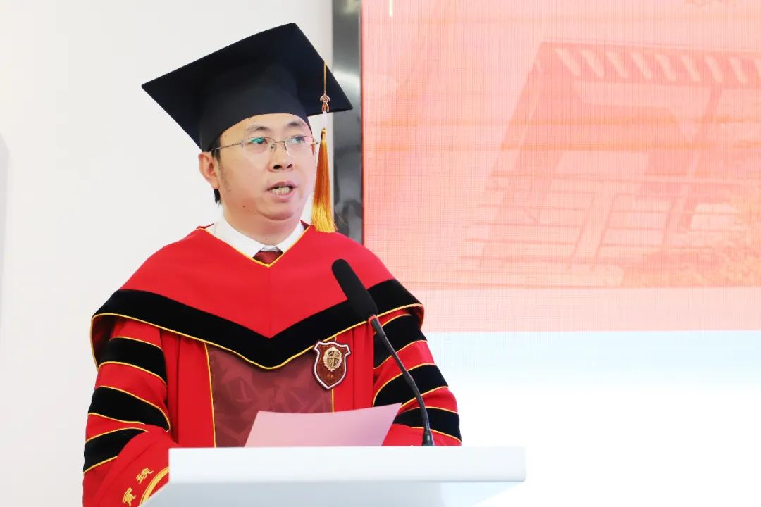 在毕业典礼的庄严时刻,经理沈中伟教授发表了鼓舞人心的讲话。他深情寄语即将展翅高飞的毕业生们,要以积极与自信人生态度,拥抱广阔世界。深刻阐述了社会实践与价值观塑造的紧密联系,指出个人的命运应与祖国的发展脉搏同频共振,通过社会实践的熔炉不断锤炼思维深度。他勉励毕业生们要以远大理想为航标,将个人追求融入国家发展大局,既要仰望星空,还要脚踏实地,鼓励学子们既要胸怀大志,又要从细微处着手,用实际行动践行理想。沈教授还回顾了毕业生们的成长历程与母校情怀,对学子们的未来充满了期待。最后,他鼓励毕业生们勇敢面对挑战,积极融入社会发展,在中国发展的洪流中勇立潮头,同时保持纯真善良,坚守道德底线,以精英的标准要求自己,不断追求卓越,用实际行动书写人生的华章。