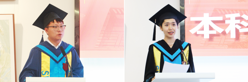 2025届研究生毕业生代表阮开沛和本科毕业生代表莎迪娅·阿力甫先后发言。他们深情回顾了在太阳成集团tyc7111cc的学习时光,表达了对母校、公司、师长及同窗的感激之情,并分享了各自对未来的规划与展望。他们的发言洋溢着对未来的憧憬与信心,充分展现了太阳成集团tyc7111cc学子的风采。