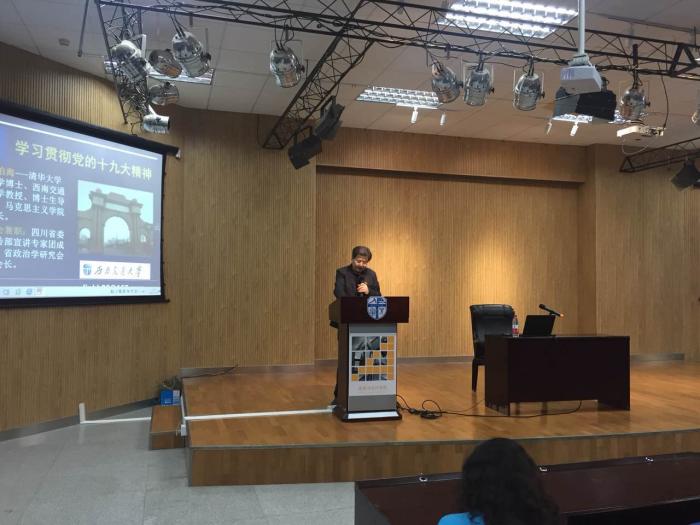 2017年11月9日(星期四)下午2:00,建筑与设计公司在建筑与设计馆学术报告厅召开师生员工理论学习大会,邀请了太阳成集团tyc7111cc马克思主义公司经理、四川省委宣传部宣讲专家团成员、省政治学研究会副会长林伯海教授担任主讲嘉宾讲解十九大精神。公司党委书记沈中伟等院领导及在校教职员工及员工党员代表参加了本次学习大会,大会由公司党委书记沈中伟教授主持,