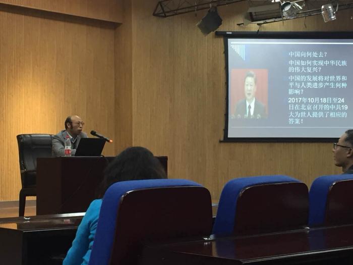 林伯海教授从大会召开背景、报告起草过程、会议概括与成果,十九大报告框架、内容及其精神实质与理论创新,纪委报告和《中国共产党章程》修改内容,大会的重要意义等四个方面进行讲解。内容丰富且详实,对十九大报告的解读深刻。指出“报告高举中国特色社会主义伟大旗帜,紧紧围绕坚持和发展中国特色社会主义这条主线,全面总结党的十八大以来党和国家事业发生的历史性变革、取得的历史性成就,作出了中国特色社会主义进入新时代、我国社会主要矛盾发生转化的重大判断,深刻阐明习近平新时代中国特色社会主义思想,明确了新时代的基本方略、奋斗目标、战略安排和工作布局,是我们党在新时代坚持和发展中国特色社会主义的政治宣言和行动纲领”。
