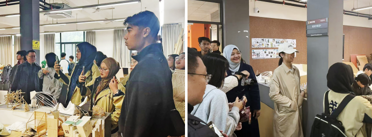 在自由交流环节,双方师生围绕课程中的实践环节设置、历史街区保护与更新、社区公众参与方法以及应对气候变化的韧性城市规划等前沿议题展开了讨论,现场互动频繁,思想碰撞激烈。随后,城乡规划系老师陪同访问团参观了公司的教学、展览、实验等空间。马来亚大学师生对公司的建筑设计及城乡规划设计成果给予高度评价。