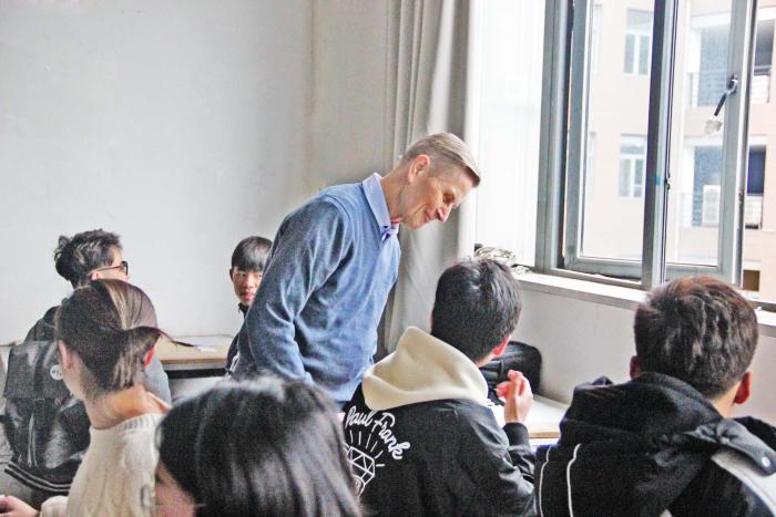 3月5日是新学期第一天。上午7时50分,公司党委书记沈中伟、经理Odgaard携全体院领导,教务员、辅导员等巡视了新学期第一天上课情况,并看望师生。