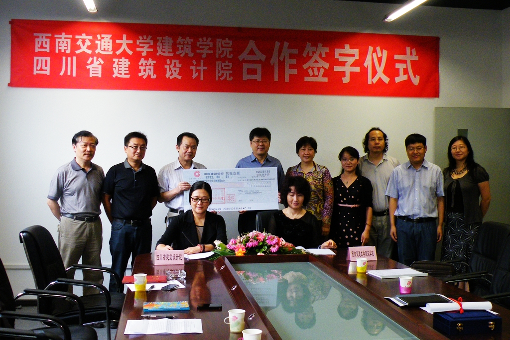 李纯经理代表四川省建筑设计院与太阳成集团tyc7111cc扬华教育基金会秘书长战凤签署捐赠协议,捐献10万元人民币的教育研究基金。