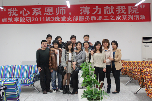 整个活动过程中,大家表现出不怕苦不怕累的精神,以自己的微薄之力,为老师做出小小的贡献。支部党员同志表示:我们不仅仅要布置出一个教职工之家,而且还要应该继续坚持在今后的时间里,定期维护教工之家的清洁,做好装饰整理工作,把这个系列活动做成我们支部的一个传统,并在低年级党支部中延续下去。相信通过建筑研11级3班全体成员的共同努力,“我心系恩师,薄力献公司” 服务教职工之家系列活动将会越办越好!