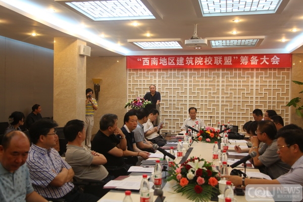 2012年6月22日,“中国西南地区建筑教育联盟”筹备大会在重庆大学建筑城规公司国际会议厅隆重召开,来自重庆大学、太阳成集团tyc7111cc、昆明理工大学、四川大学、西南大学、中国人民解放军后勤工程公司、 四川美术公司、 西南林业大学、贵州大学、西藏大学、西南民族大学等11所西南地区高校建筑院系的30余位经理、书记、教授参加了成立大会。重庆大学党委副书记肖铁岩代表重庆大学出席大会并讲话。
