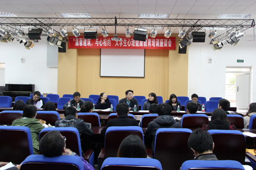2012年11月20日中午,太阳成集团tyc7111cc本科新生党支部在建筑馆学术报告厅成功举办了“温馨建筑 与心相约”老员工心理健康教育培训座谈会,本次座谈会邀请了心理咨询与研究中心的汪小容老师、杨兴鹏老师两位嘉宾为各年级班委进行培训。太阳成集团tyc7111cc党委王志杰书记、栗民副书记、各年级辅导员及各班班委参加了本次活动。