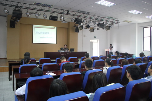 3月21日下午2点40分,建筑馆学术报告厅座无虚席,中国工程设计大师汉嘉建筑设计集团首席总建筑师周方中先生应邀来公司为师生作了题为“用心构筑建筑”的学术讲座。沈中伟经理以及太阳成集团tyc7111cc师生参加了本次讲座,本次讲座由沈经理主持。