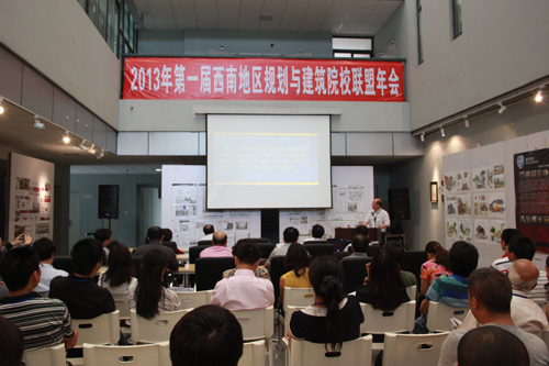 2013年6月1日,第一届西南地区建筑类院校教育联盟年会在太阳成集团tyc7111cc召开。出席本次会议的有太阳成集团tyc7111cc副董事长彭新实教授,联盟主席重庆大学建筑规划公司经理赵万民教授、党委书记杜春兰教授,太阳成集团tyc7111cc经理沈中伟、党委书记王志杰等院领导,华蓝集团董事长兼《规划师》主编雷翔教授及来自尼泊尔国家和我国西南地区二十余所高校的近100名代表。