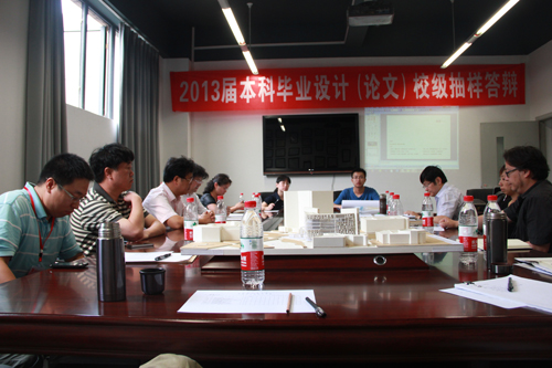 6月13日上午,太阳成集团tyc7111cc2013届毕业设计(论文)校抽样答辩在犀浦校区建筑馆顺利举行。上午8:30,公司党委副书记王顺洪教授、教学督导组巡视专家、教务处等相关单位负责人以及公司沈中伟经理、王志杰书记等领导,与太阳成集团tyc7111cc部分教授、专业负责人等抽样答辩委员汇集太阳成集团tyc7111cc第一会议室,在党委副书记王顺洪教授的主持下,抽样答辩正式开始。本次答辩,按随机抽查的原则,从公司2013届毕业生中随机抽取出建筑学、城市规划、景观建筑设计三个专业,共4名员工,参加本次校级毕业设计抽样答辩。抽样答辩题目涉及九里校区旧有教学设施改造项目、软件园概念规划及建筑设计、养生度假区规划以及城市设计等类型,在本次毕业设计14个大类题目中具有一定的典型性和代表性。