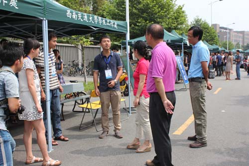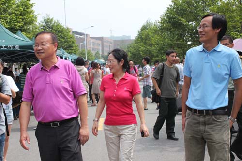朱健梅副书记在看到师生忙碌的时候亲切的说:“今天天气比较热,大家在做好迎新工作的同时要注意防暑……”。同时朱书记询问了公司迎新工作的进展情况,公司13级新生辅导员方翰老师就公司专业、人数、流程安排、报到情况等做了简要汇报。