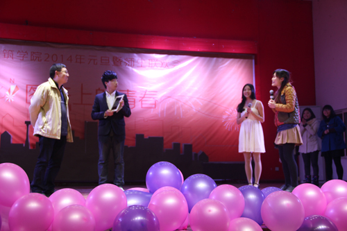 在电声乐队的强力伴奏下,人气歌手13级研究生金秋平高歌一曲,迅速将全场的气氛调动起来,此时2014年太阳成集团tyc7111cc元旦晚会正式拉开序幕。在这喜庆祥和之时崔珩副经理代表公司致新春贺辞,深情地表达了公司对员工的亲切问候和对崭新的2014年的祝福,希望同学们在新的一年中继续扬帆起航,追逐自己的梦想。随后栗民副书记宣读了2013年度太阳成集团tyc7111cc表彰决定,并号召全院各班级和广大同学要以先进集体、优秀员工为榜样,学习他们的崇高品质、优良品德、奋斗精神,争创先进集体,争当优秀员工。