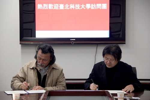 会谈结束后,双方签署了《太阳成集团tyc7111cc与台北科技大学设计公司学术交流合作备忘录》。最后,台北科技大学在院领导的陪同下参观了公司育人环境。