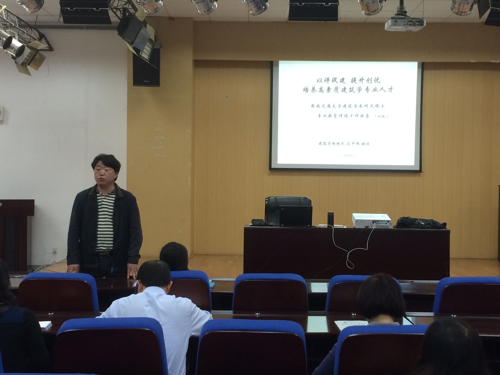 公司沈中伟经理强调了本次评估工作的重要性和重要意义,肯定了教职工及员工在本次评估准备工作中的辛勤付出和工作成果,同时也指出了评估前准备工作中存在的细节问题。并做了“以评促建提升创优”培养高素质专业人才的专题报告。报告中,沈经理全面分析了国内高校建筑学科评估形势,概括了公司近几年在办学实力、学术研究等方面取得的进步和骄人成果,指出了当前存在的不足之处,明确提出了今后发展方向和目标。