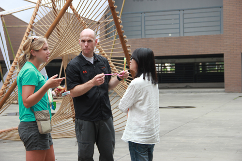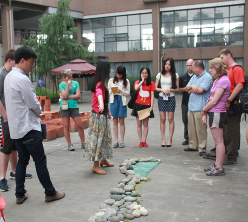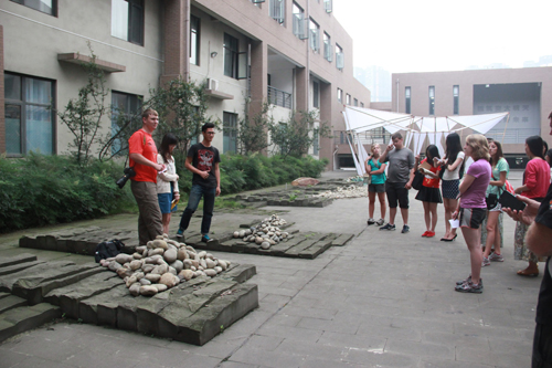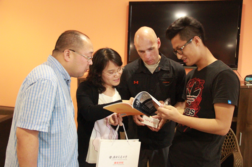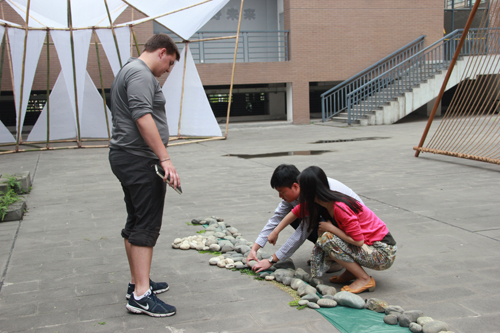 5月22日下午,美国俄克拉荷马州立大学景观系带队老师Nichoias向参与师生介绍了program,与太阳成集团tyc7111cc员工分为四组分别就earth、air、water中一种原素为主,在建筑馆内外做景观设计方案。