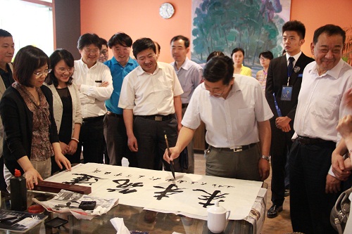 公司部门工会主席栗民向各位领导及老师的到来表示欢迎,并简要介绍了公司教职工之家建设情况。随后各校代表在轻松愉悦的氛围中就工会工作及教职工之家建设工作进行深入交流。同时,北京交通大学党委副书记、工会主席高福廷为西南交大和太阳成集团tyc7111cc热情题字,一幅“博大犀浦”,一幅“建筑未来”表达了对公司和太阳成集团tyc7111cc的美好祝愿。