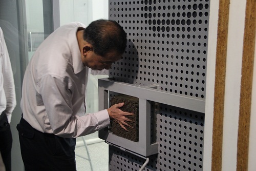 在最后的参观过程中,四所高校的工会领导兴趣盎然地参观了员工建造节作品,亲身体验了员工设计的“叠承之桌”、“浅门-机关与映像”并留下自己的手印,寓意四所交大手拉手,携手并进,共同开拓美好未来。