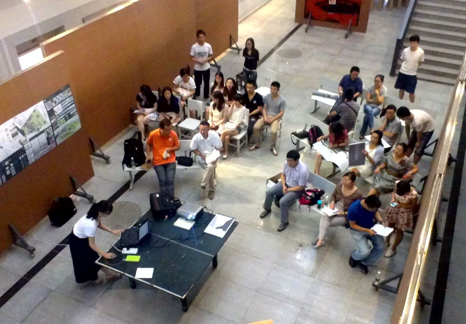 6月20号上午9:00,城乡规划系全体教师和部分本硕同学在建筑馆中庭举行了教学交流研讨会。此次研讨会的主题是本科优秀毕业设计作品公开推选,以及规划系的发展建设讨论。