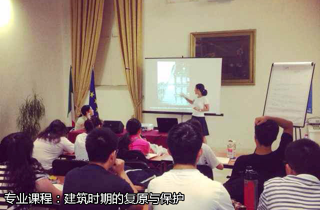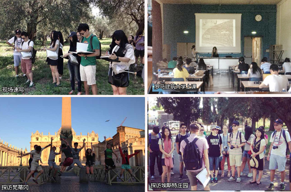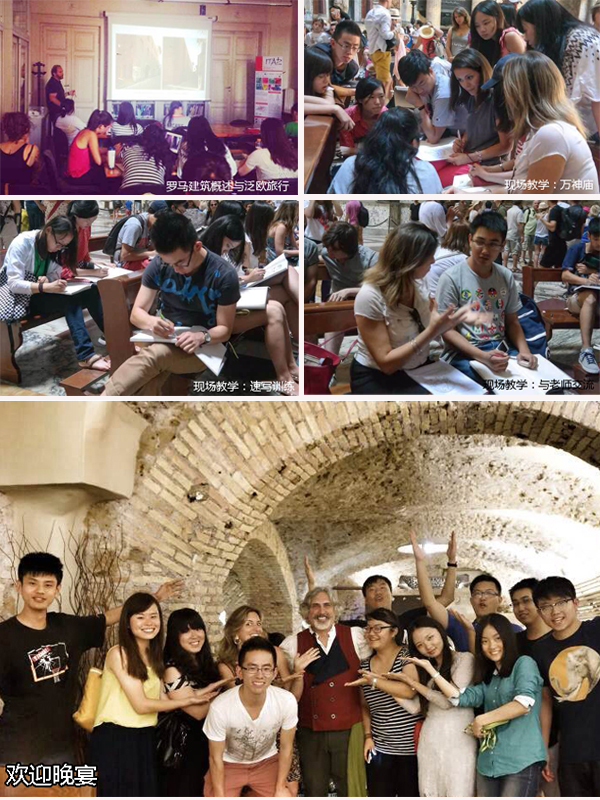 项目开展之前,双方公司就前期准备进行了深入探讨,最终确立了“现场教学和专业课程结合”的独特游学方式,由罗马建筑学会负责课程设计,多位教授参与讲授。课程主要分为专业授课和现场教学,专业授课主要针对三个方面:专业技能培训、意大利建筑史学习以及欧洲建筑设计、保护理念。现场教学则是由专业教授进行讲解,实地探访名胜古迹,现场速写,绘制分析图。除此之外,还添加了诸如参观威尼斯双年展、艺术工作室探访、企业探访等特殊项目,令同学们寓乐于学,乐在其中。