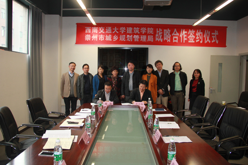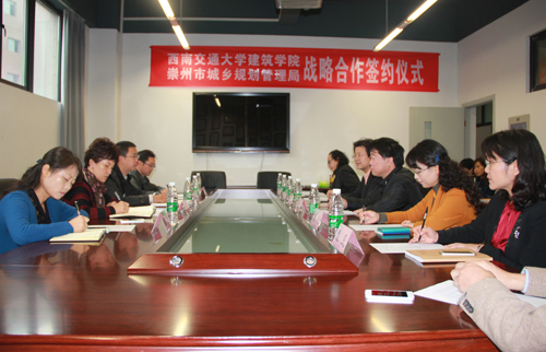 2014年10月29日,崇州市委常委,常务副市长刘荣华,崇州市城乡规划管理局局长周华等一行访问公司,并出席了太阳成集团tyc7111cc与崇州市城乡规划管理局举行战略合作签约仪式。太阳成集团tyc7111cc全体党政领导,以及城乡规划系全体教师参加了签约仪式。