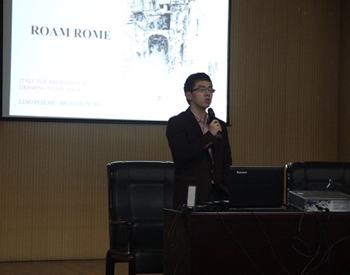 活动伊始,一段精彩的影片展示了2014年暑期意大利访学的成果,精彩丰富的内容不仅让参加了这次访学项目的同学们仿佛回到了在意大利的愉快时光,感慨万千,同时也让参与活动的300余名同学们大开眼界,跃跃欲试。视频之后,Leopoldo Russo Ceccotti和Laura Colazza从罗西里尼导演的电影作品《罗马,不设防的城市》出发,解析罗马丰富与开放的城市性格,挖掘罗马独特的城市语言,展现出“罗马既是一个城市,同时又是多个城市”背后深刻的城市内涵。同时Laura Colazza还讲解了有关于梵蒂冈这座宗教城市的发展历史和发展形态。在西方艺术设计领域,言必罗马。作为“永恒之城”,罗马在美学设计、城市建筑等领域极具活力,极大地丰富了现代艺术设计的内容。这次讲座使同学们深深了解到了罗马这座城市深深的魅力,也对这个访学项目产生了浓厚的兴趣。