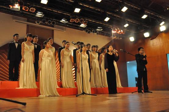 转眼间半年过去了,合唱团也在不断革新,新老更替,大三的学姐学长将他们组织协调的重任交付给现在大二的这一届,同时合唱团也注入了新鲜血液,许多大一的学弟学妹加入到了我们的队伍中来,让合唱团这个“家庭”更加有了“传承”的意味。除此之外,校办的张丹妮老师担任了我们的钢琴伴奏。在三位老师的共同带领下,合唱团跨入了一个新阶段,在刚刚过去的世界华人建筑师大会(WACA)上,我团交出了满意的答卷,一曲《乘着歌声的翅膀》让沉闷严肃的会场立刻变得轻松欢快起来,许多在座的建筑界人士都沉浸在悠扬的歌声中,纷纷拿出相机记录这美妙的一刻。这次成功的演出不但让大家都信心大增,还增进了团员之间的感情,同时也让每个人懂得了一个朴素的道理:只要坚持总会有收获。