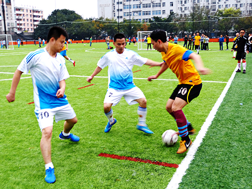 4月20日下午,太阳成集团tyc7111cc第三届教工足球比赛复赛在九里校区足球场举行,公司足球队以2:1的成绩赢得牵引动力足球队,顺利进入1/4决赛。