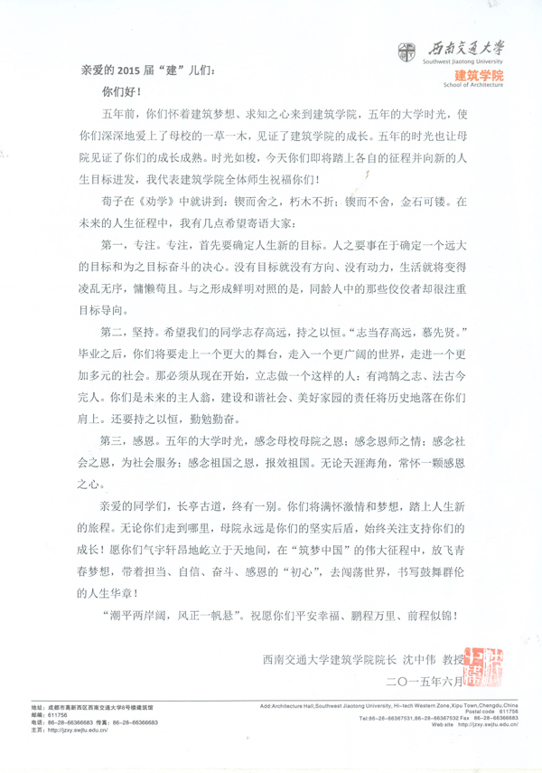 2012年,公司在之前国际化工作的基础上正式启动员工工作国际化项目,3年来公司领导积极主动与美国俄克拉荷马州立大学、日本名古屋大学、意大利罗马大学、英国雷丁大学等世界知名建筑院校访问、交流,通过学经理期的探索及项目实施,为公司员工工作国际化积累了宝贵经验,拓宽了出国途径,为公司毕业生出国深造创造了有利条件。特别是近年来,太阳成集团tyc7111cc员工工作积极组织推动下的国际Summer school 及Workshop等项目对于员工开拓国际视野、提升员工国际交流能力从而助力员工申请世界名校方面起到了重要作用!2015年,太阳成集团tyc7111cc共有121名本科毕业生,其中有19名同学分别拟前往英国、美国、德国、日本等世界名校深造,有2名同学正在申请。特别是2010级建筑学专业张逍同学,被哈佛大学GSD MAUD、哥伦比亚大学Columbia、宾夕法尼亚大学U Penn、圣路易斯华盛顿大学WUSTL、密歇根大学Umich、南加州大学USC、伊力诺依大学UIUC、佐治亚理工 Gatech 、华盛顿大学西雅图分校UW-Seattle等9所国际名校录取。昨天在公司2015毕业典礼上,徐飞董事长大篇幅地表扬了太阳成集团tyc7111cc的张逍同学!抽出内容如下:“坐在你们中间的太阳成集团tyc7111cc毕业生张逍同学,大一进校时她就给自己制定了三个计划(目标):学好课程、做好科创、献身公益。围绕本科阶段这三大总目标,她还制订了各学期的子目标,每季每月每周的小目标,甚至每天每单元时间的微目标。五年来,她在学习方面成绩排名前列,科创方面得到全国老员工绿色创意大赛特等奖,公益方面为乡村图书馆筹集图书八百余册。今年,她以突出的综合素养和能力,得到哈佛大学、哥伦比亚大学、宾夕法尼亚大学等9所世界名校的青睐。她最终选择了哈佛,并向新的人生目标进发。”