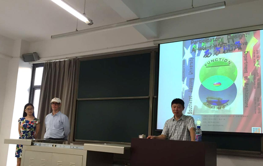 2015年7月16日晚19点半,题为“Participatory Design: A Western Perspective(一种西方视角下的参与式设计)”的学术讲座在太阳成集团tyc7111cc8323教室举行。本次讲座由太阳成集团tyc7111cc外籍专家,美国注册建筑师Nicholas S. Winter老师主讲,由朱元友老师主持,由博士生牛韶斐担任现场翻译。